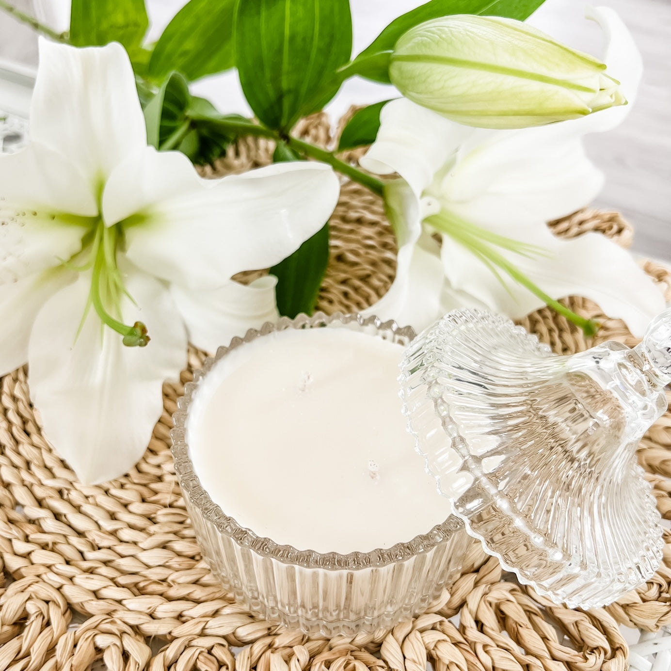 Frosted Gold Christmas Candles - A special Christmas addition. Burn time: 50 hours Circus Cut Glass Candle & Lid - Cut glass candle holder with a circus lid. Burn time: 25 hours Ceramic Candle** - Ceramic pot with a wooden lid. Burn time: 45 hours Christmas Tealight holder** - Variety of Christmas patterns, measuring 6cm wide & 8cm high, including one tealight candle. We’ll choose your tealight glass colour for you. If you have a preference, please make a note in comments Melts - packet of 6 melt cubes Tealight Candles - packet of 6 tealights Medium Glass Candle - Clear glass with a white metal lid. Burn time: 30 hours Amber Glass Candle - Amber glass with a wooden lid. Burn time: 35 hours Matt White Double Wick Candle - Matt white glass with a white wooden lid. Burn time: 52 hours